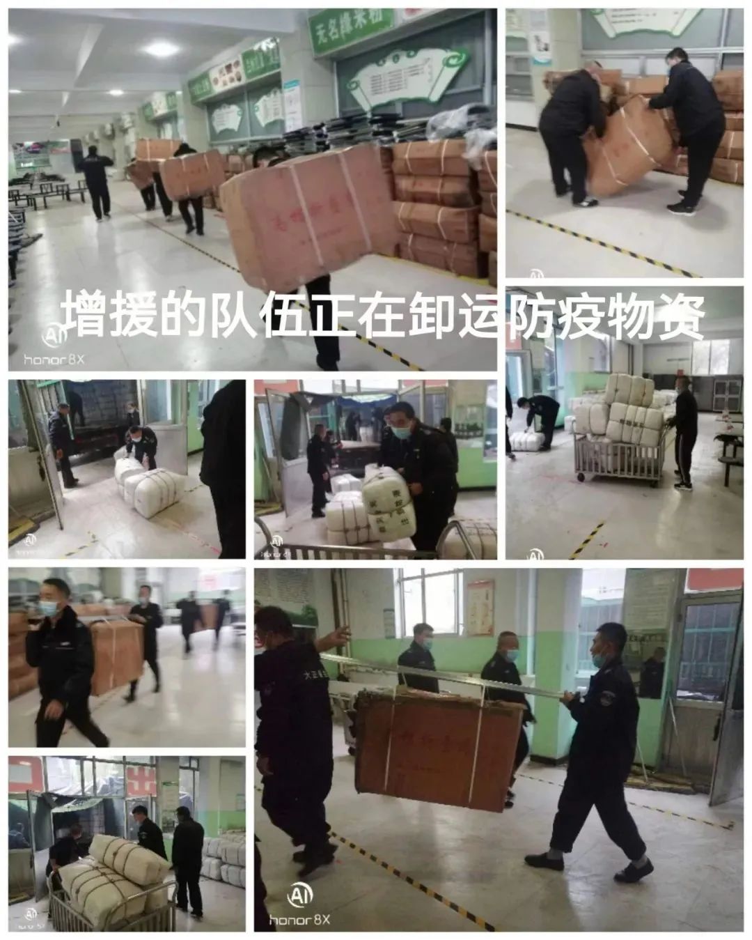 大正人增員隊(duì)伍正在卸運(yùn)防疫物資