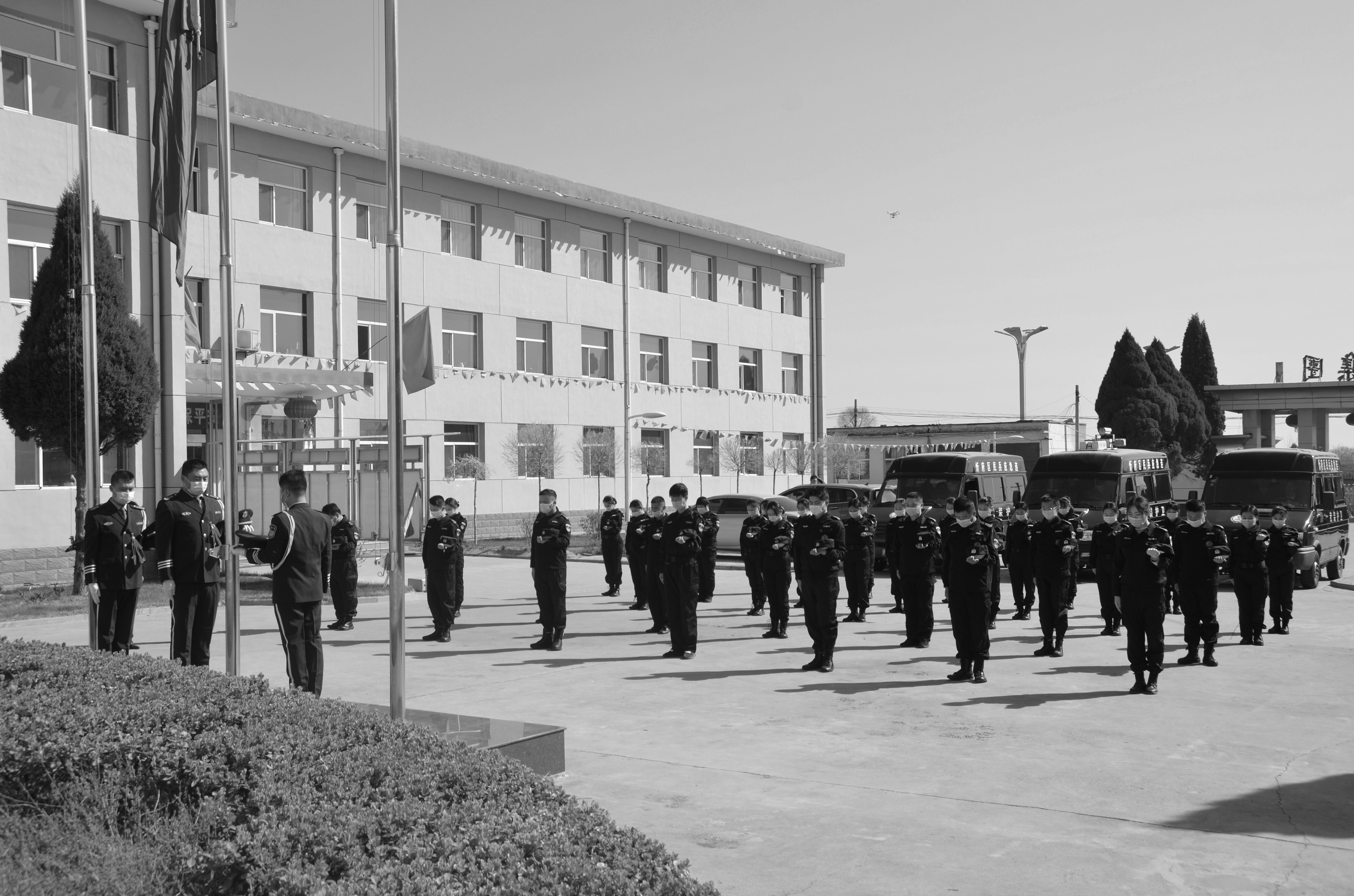 庚子清明,舉國哀悼。4月4日上午,山西大正保安服務(wù)(集團(tuán))有限公司在城南駐地舉行悼念活動,表達(dá)對抗擊新冠肺炎疫情斗爭犧牲烈士和逝世同胞的深切哀悼。本次悼念活動共有50余名干部職工共同參加。