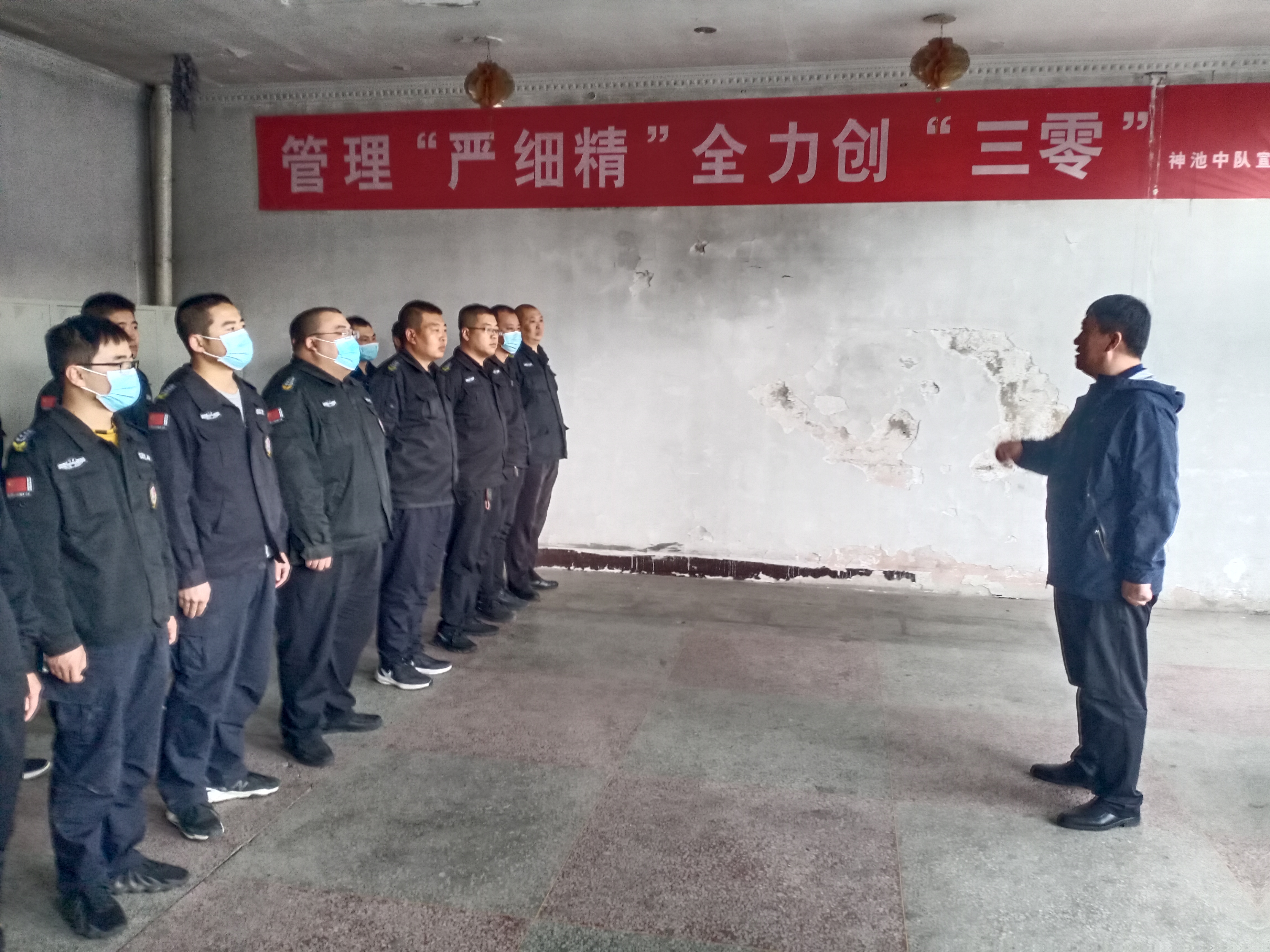 檢查結(jié)束后,總經(jīng)理趙培宏首先肯定了神池中隊(duì)在日常運(yùn)營(yíng)和消防安全嚴(yán)格按照集團(tuán)公司的制度和工作部署所做的成績(jī),針對(duì)檢查結(jié)果提出了要求:確保隊(duì)員身心健康,加強(qiáng)日常管理,增強(qiáng)安全意識(shí),開(kāi)展消防安全演練。