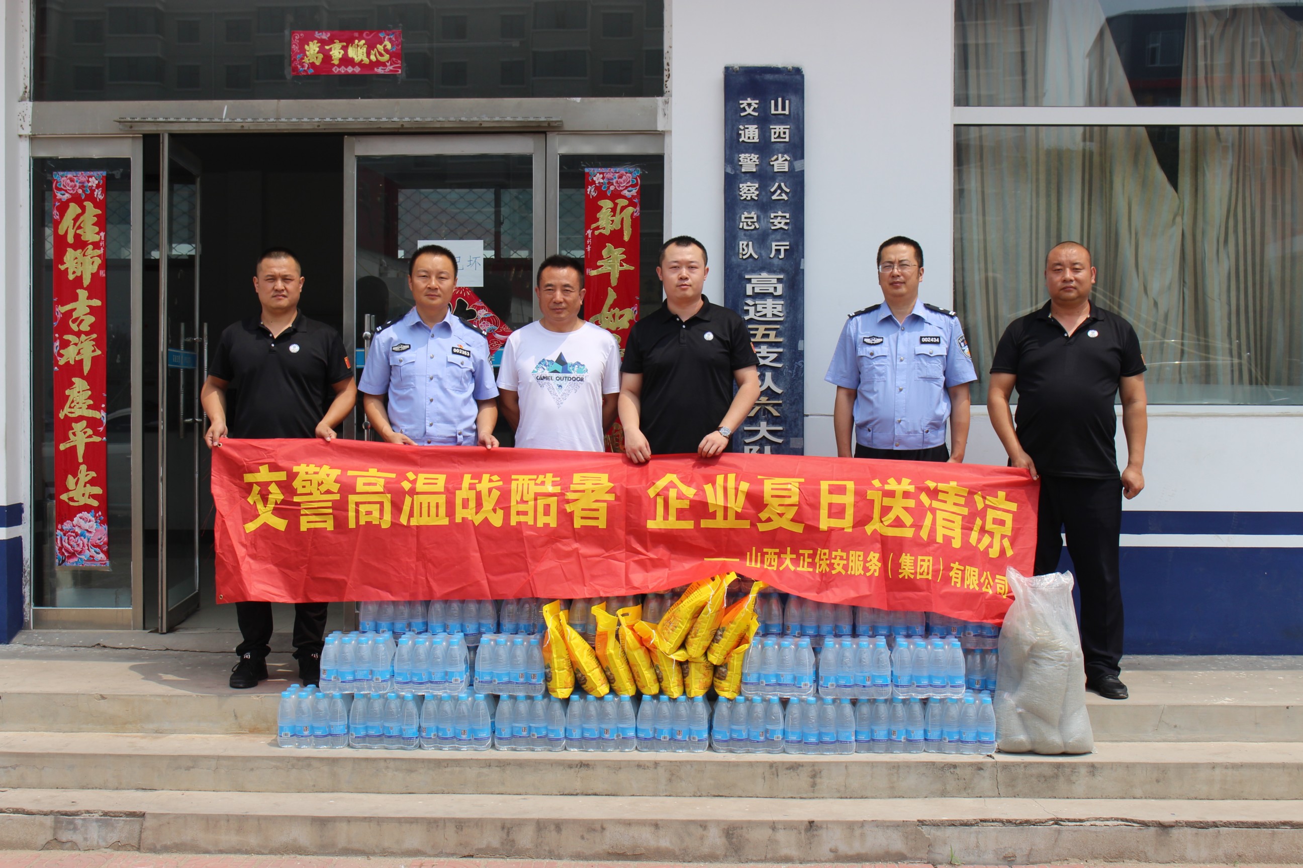 本次山西大正保安服務(集團)有限公司共計慰問34家基層交警,送去礦泉水1560件、小米340袋、綠豆340袋。