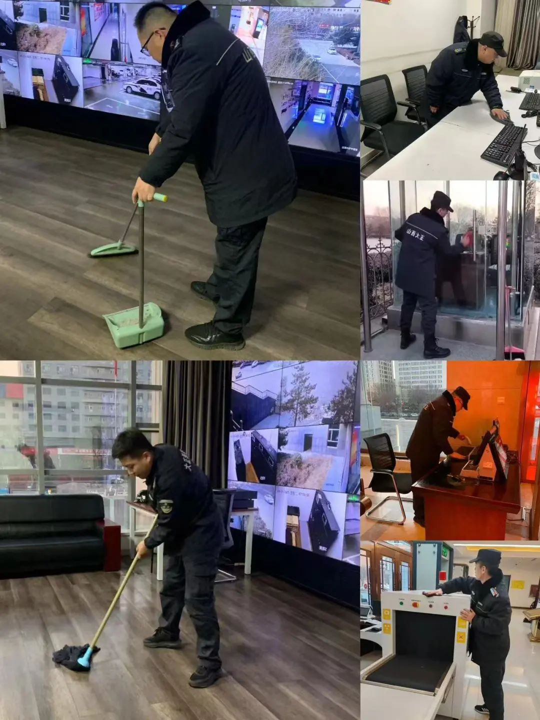 連日來,山西大正保安服務(wù)集團(tuán)公司各值勤崗點在保質(zhì)保量做好本職安保工作的基礎(chǔ)上,自覺從各自駐勤點綜合環(huán)境情況出發(fā),主動利用空余時間開展衛(wèi)生大掃除活動,著重對執(zhí)勤門衛(wèi)室、崗?fù)ぶ苓、窗戶窗臺、道桿道閘以及消防防暴器材等區(qū)域、設(shè)施進(jìn)行了清掃和整理。