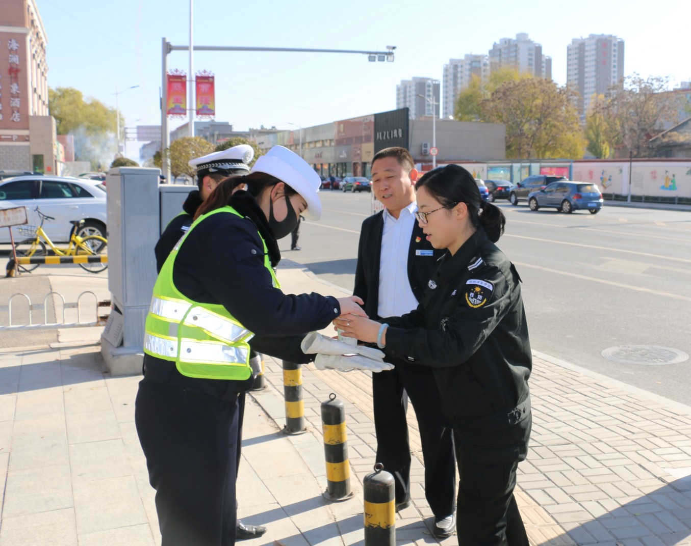 11月14日,技防公司經(jīng)理郭二平一行深入各個執(zhí)勤點(diǎn),慰問了奮斗在一線執(zhí)行勤務(wù)的同志們及交警隊員。