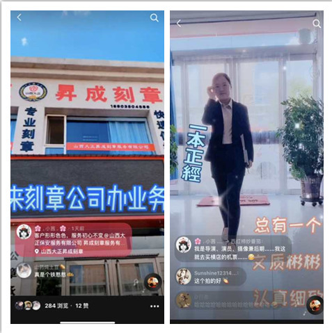 山西大正昇成刻章服務有限公司在這一背景下,結(jié)合業(yè)務運營實際,以拍攝公司宣傳片、制作有趣視頻、段子等多種方式,通過策劃、拍攝、錄音、剪輯、配樂、合成輸出等過程制作成片,在抖音、微信等云端平臺進行發(fā)布,對公司進行全方位宣傳。以期利用抖音“短”視頻平臺優(yōu)勢,將信息及時適配用戶群體,發(fā)揮企業(yè)宣傳“長”效應。